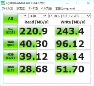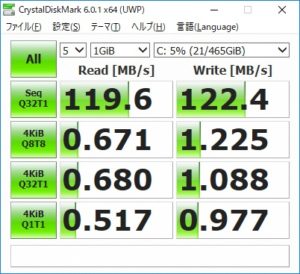余り意味はないのですが、HDDとSSDでのベンチテストしてみました。
