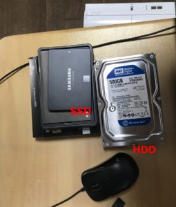 ノートPCなどでSSD+HDDの状態に出来ない場合は、SSDだけにして既存のHDDは外付けディスクとして使用することになります。