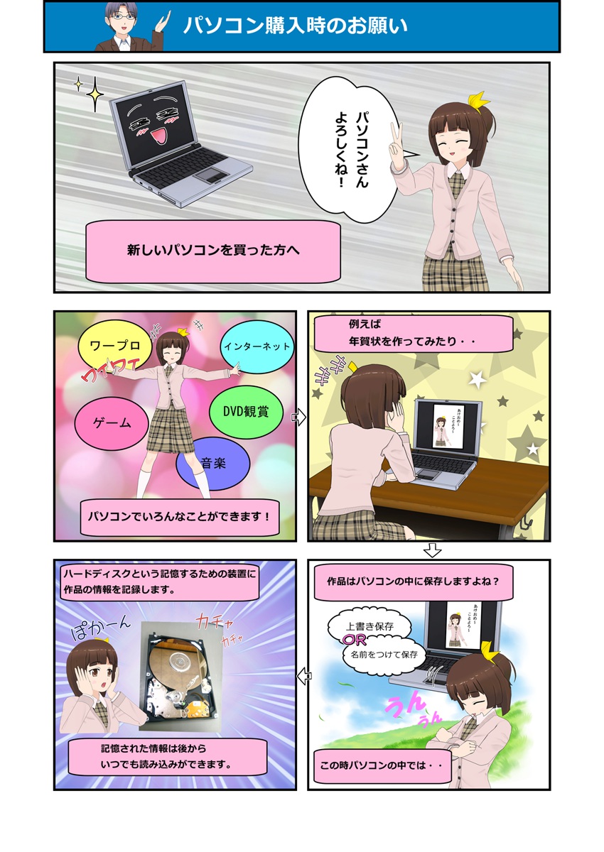 パソコンを購入された方に是非見ていただきたいことを漫画で説明していきたいと思います。