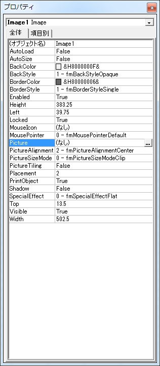今回は開発ツールのAxtiveXコントロールのイメージコントロールを使用します。